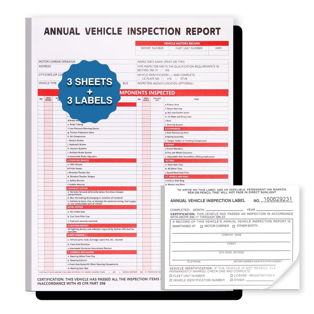 Annual Vehicle Inspection Report & White Annual Vehicle Inspection Label (3-Pack)